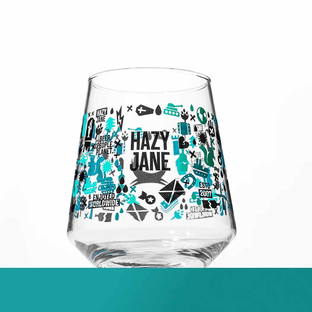 Opaque liquid. Clear vessel. New Hazy Jane glassware is here. Designed to comfortably hold a pint of Hazy Jane (other beers are available), and featuring a design full of iconic BrewDog moments from 2007 to the present day, this is a must have for the glassware cupboard. Reminisce on the past. Feel optimistic about the future. Toast your excellent beer choices in the present.